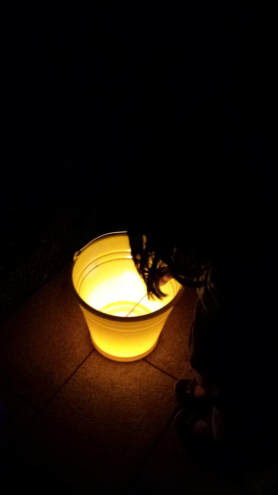 バケツの中にろうそくをたてて。